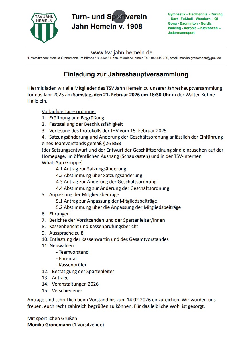 TSV Geschäftsordnung 2026 – Entwurf zur JHV