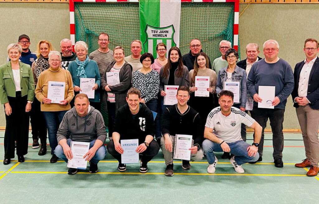 Mittlere Reihe von links: Michael Rudolph, Daniela Baake, Diana Neumann, Sandra Huck, Birte Wallbach, Heidrun Flor, Michael Ludewig, Markus Krumsiek, Angelika Seefried, Christoph Hanning (DTB), Monika Gronemann